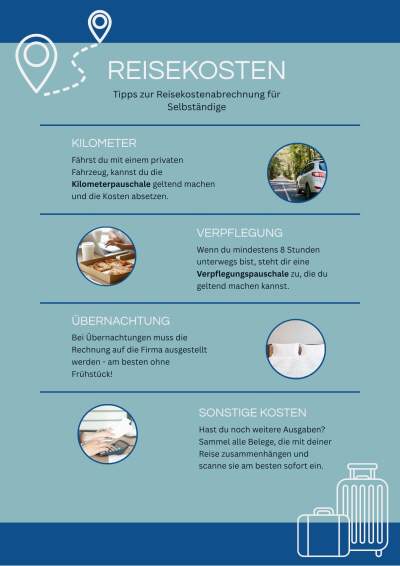 Reisekosten entstehen, wenn du aus betrieblichen Gründen außerhalb deines Wohnortes und deines regelmäßigen Arbeitsplatzes unterwegs bist. Dabei ist wichtig: Du musst tatsächlich „außer Haus“ sein – also weg von deinem Unternehmensstandort. Wenn du beispielsweise zu einem Kundentermin fährst oder an einer Weiterbildung außerhalb deiner Stadtgrenze teilnimmst, dann kannst du Reisekosten geltend machen.